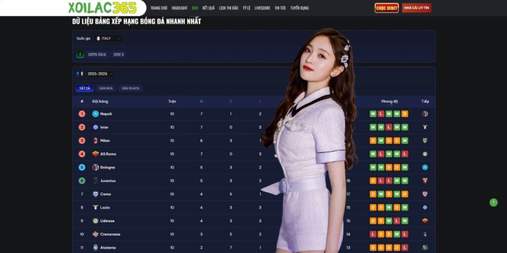 XoilacTV provides a clear and detailed Serie A table that includes points, wins, draws, losses, goals scored, goals conceded, and goal difference. The standings are updated immediately after every match, ensuring that fans always have the latest information. This accuracy allows users to track the progress of their favorite teams and see how each match affects the league hierarchy.